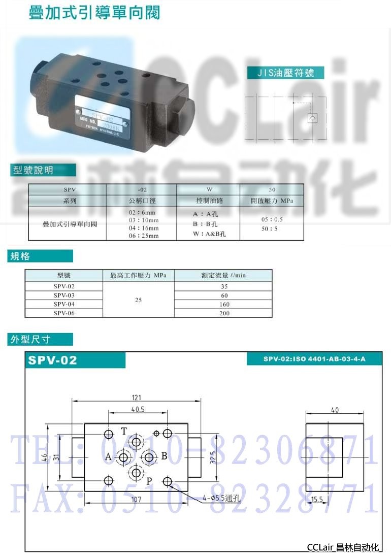 SPV-02A,SPV-02B,SPV-02W,SPV-03A,SPV-03B,SPV-03W,疊加式引導單向閥