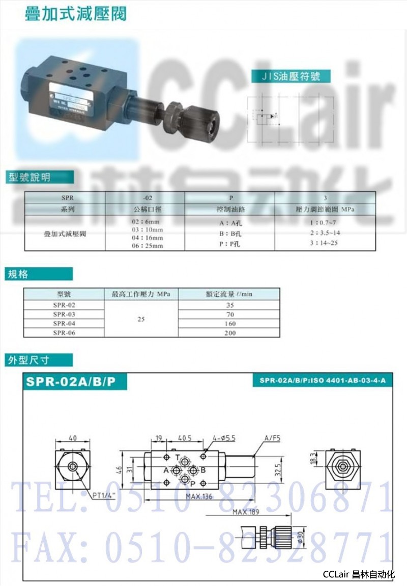 SPR-04B,SPR-04P,SPR-06A,SPR-06B,SPR-06P,疊加式減壓閥
