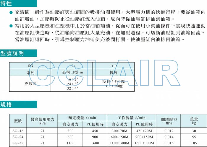 詳細信息 SG-16,SG-24,SG-32,SG-16-LR,SG-24-LR,SG-32-LR,充液閥