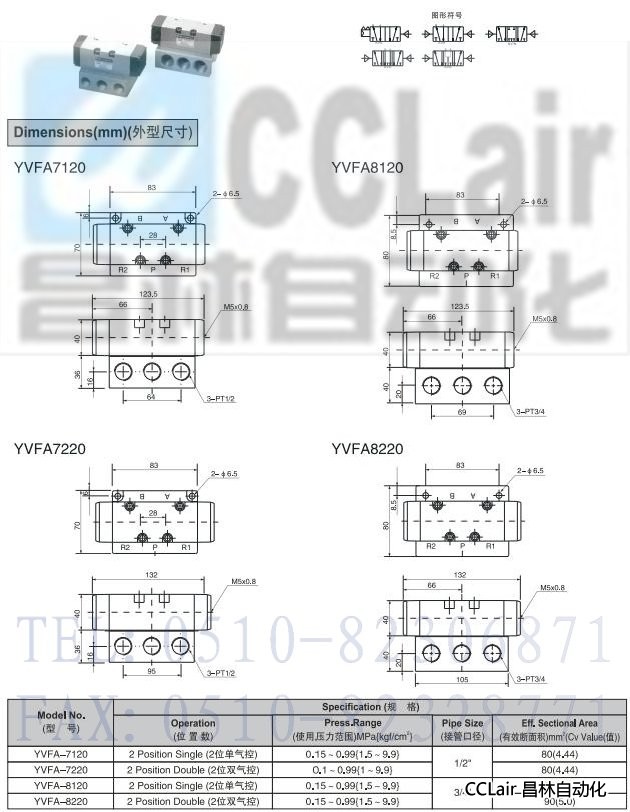 YVFA-7120,YVFA-7220,YVFA-8120,YVFA-8220,5通氣控閥