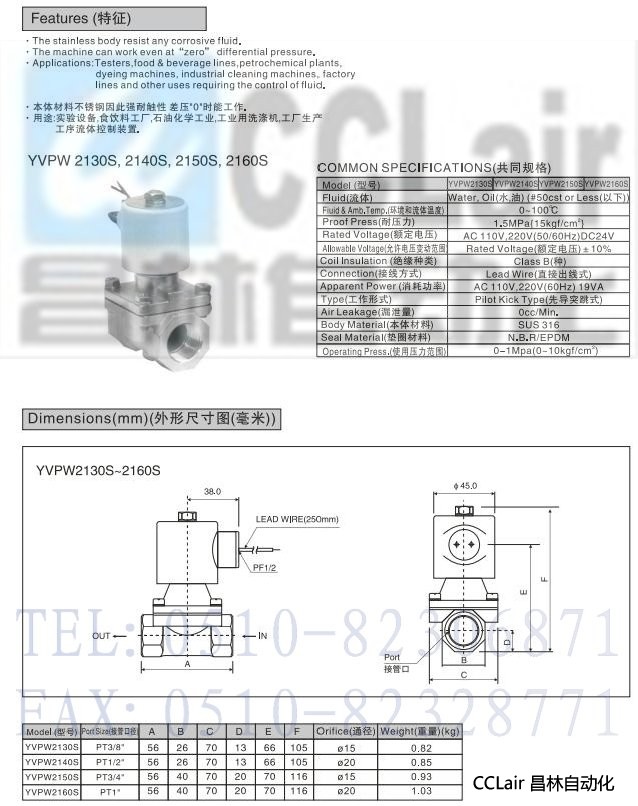 YVPW2130S,YVPW2140S,YVPW2150S,YVPW2160S,先導突跳型2通電磁閥