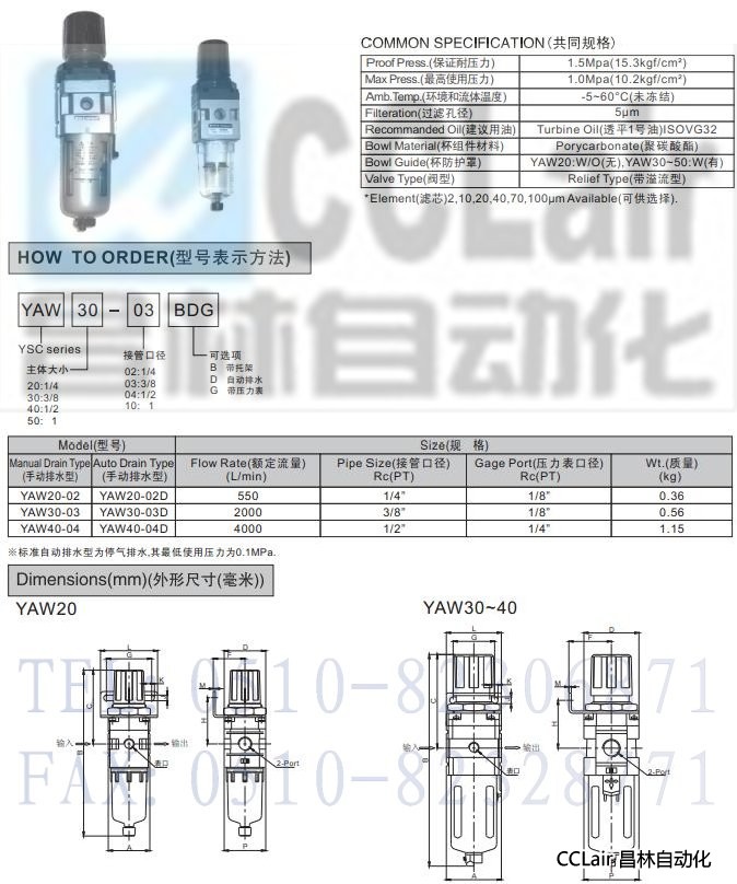 YAW20-02,YAW30-03,YAW40-04,空氣過(guò)濾器帶減壓閥