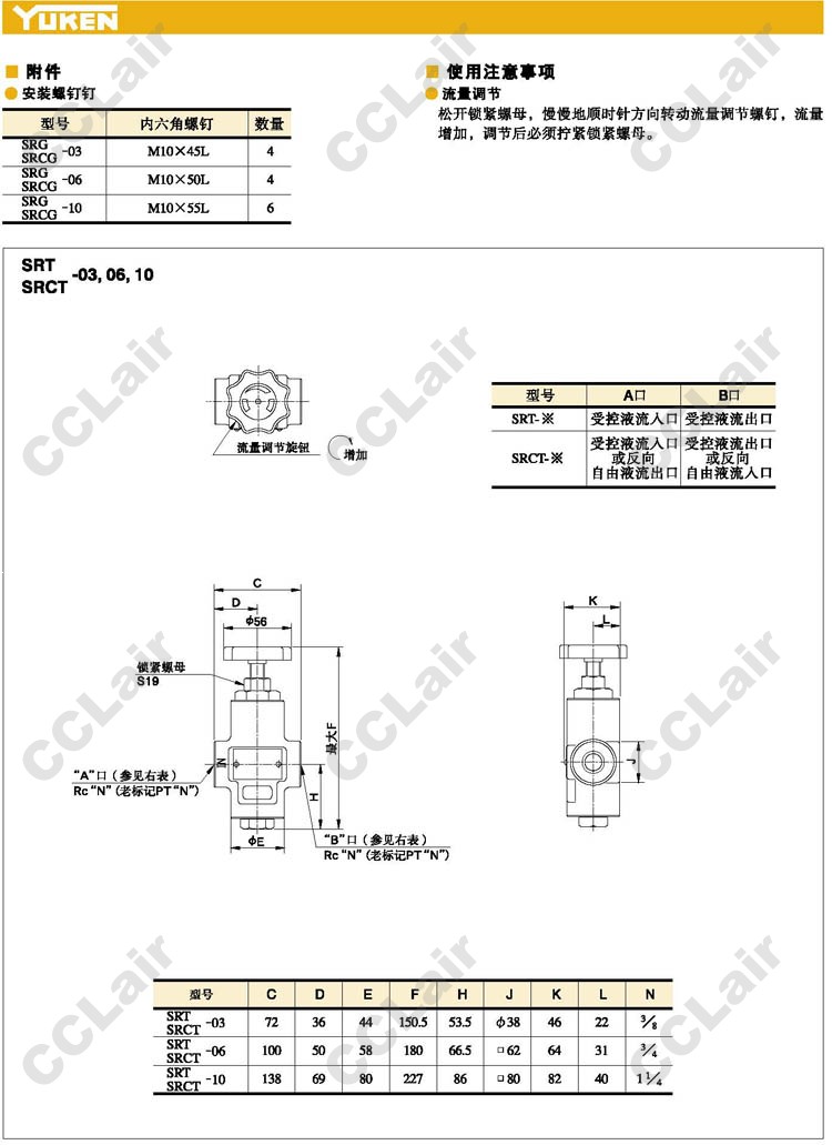 SRT-03-50,SRT-06-50,SRT-10-50,SRCT-03-50,SRCT-06-50,SRCT-10-50,節流閥,YUCIYUKEN榆次油研