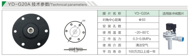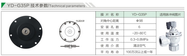 YD-G20A,YD-G20B,YD-G25,YD-G35P,YD-G40,YD-G50Y,YD-G62,YD-G76,YD-G89,YD-G102,膜片