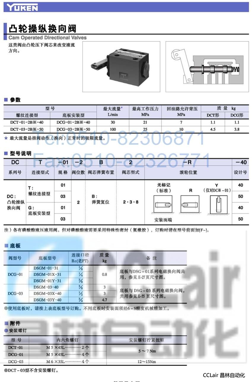 DCG-01-2B2-R-40,DCG-01-2B2-Y-40,DCG-01-2B2-40,凸輪操縱換向閥,榆次油研凸輪操縱換向閥,YUKEN凸輪操縱換向閥