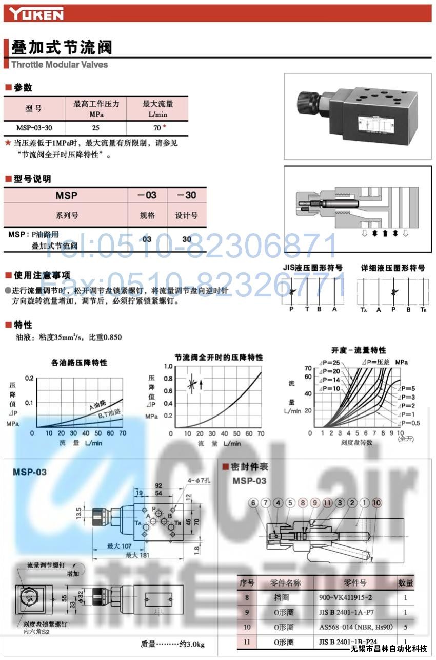 MSP-03-30,疊加式節流閥,榆次油研疊加式節流閥,YUKEN疊加式節流閥