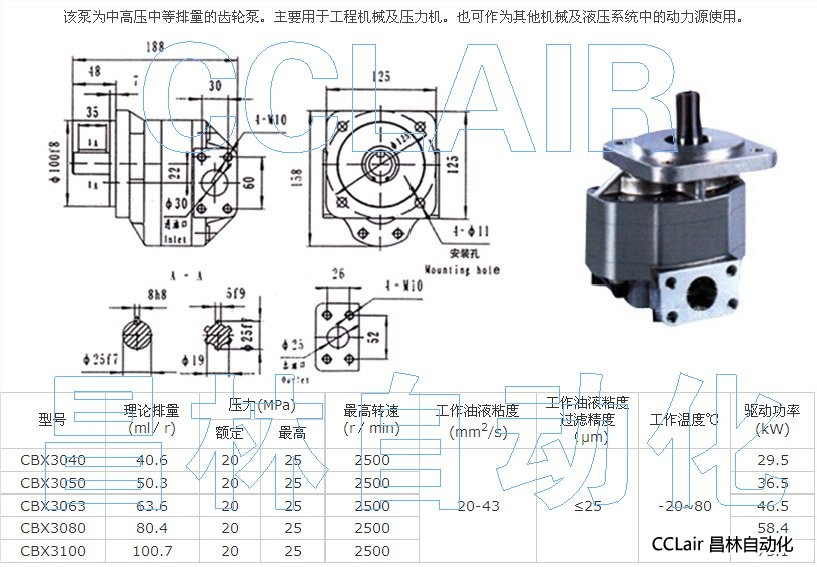CBX3040,CBX3050,CBX3063,CBX3080,CBX3100,齒輪泵