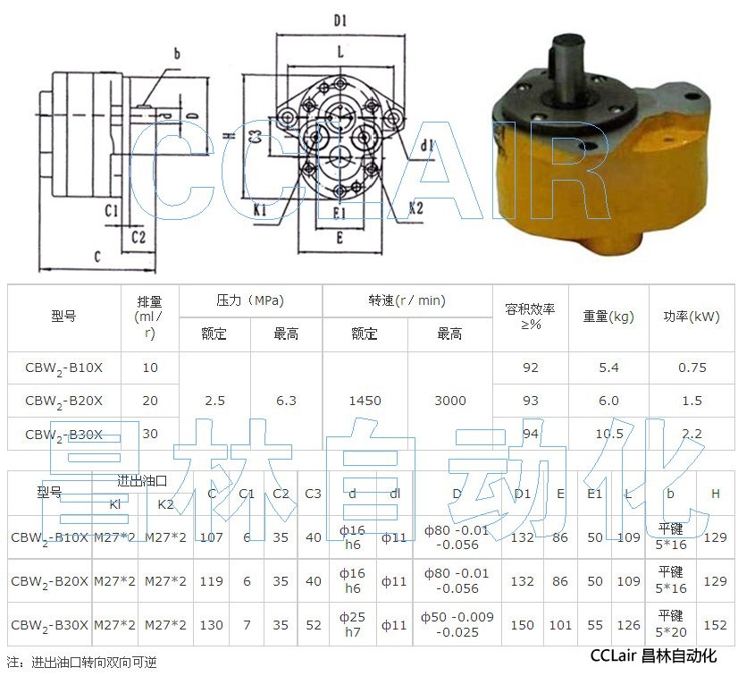 詳細信息 CBW2-B10X,CBW2-B20X,CBW2-B30X,雙向齒輪泵