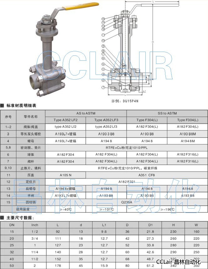 DQ15P4N,鍛鋼低溫球閥