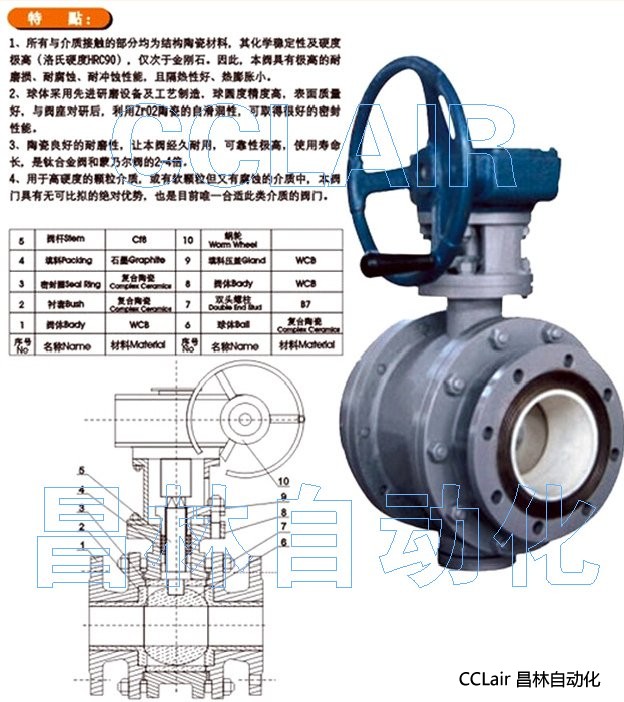 詳細信息 Q341TC-10C,Q341TC-16C,蝸輪陶瓷球閥