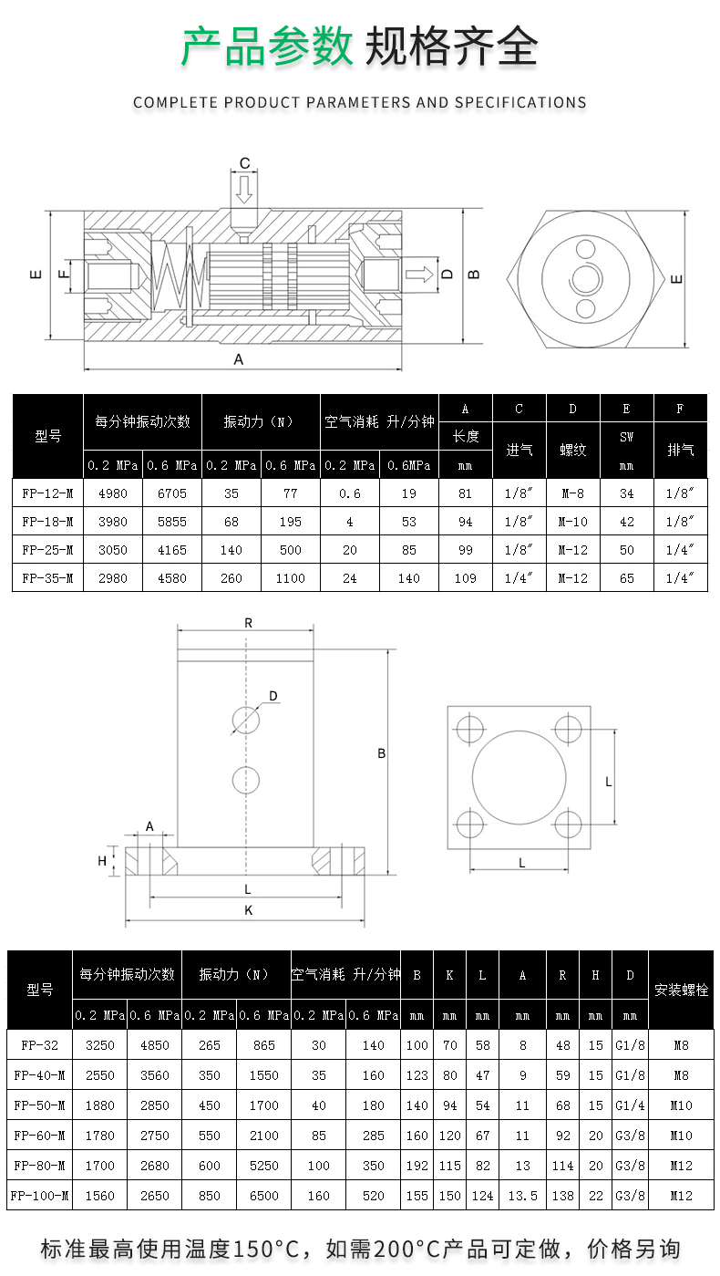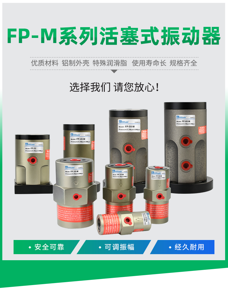 活塞往復震蕩器FP-12-M,FP-18-M,FP-25-M,FP-32,FP-35-M,FP-40-M,FP-50-M,FP-60-M,FP-80-M,FP-100-M,氣動(dòng)振動(dòng)器
