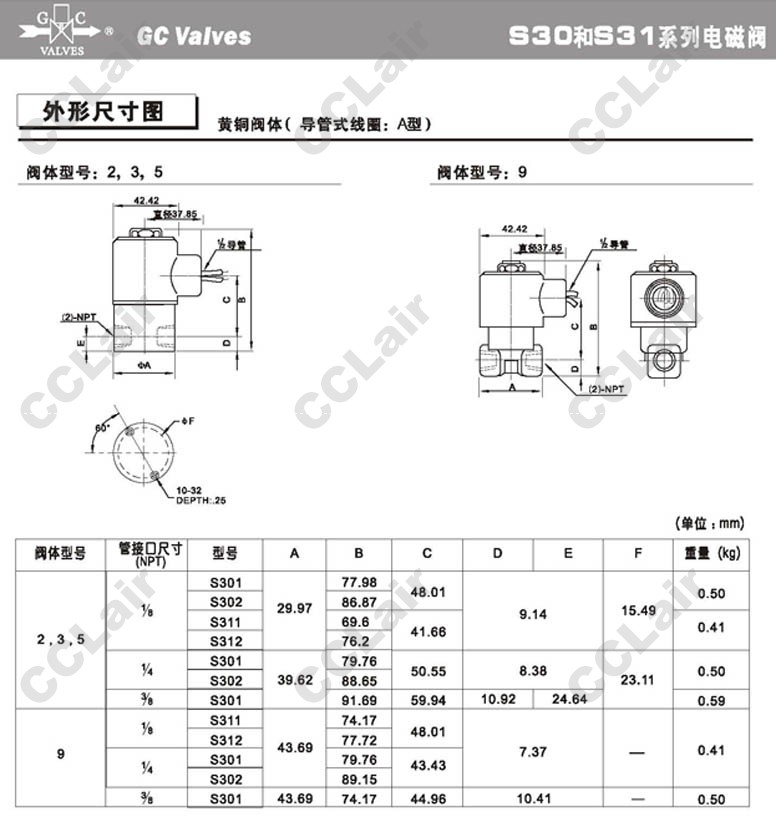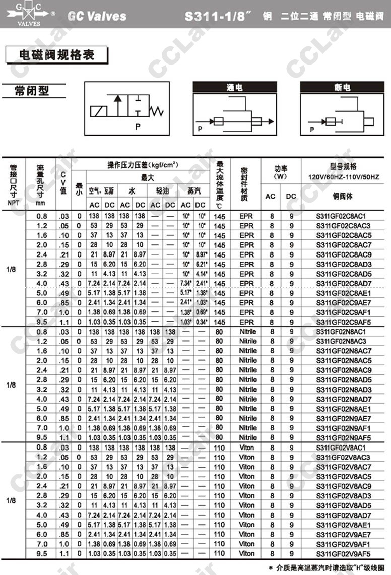 詳細信息 S311GF02C,S311GF02N,S311GF02V,S311GF02R,S311GF02T,S312GF02T8AE1,GC Valves二位二通小型直動(dòng)式電磁閥