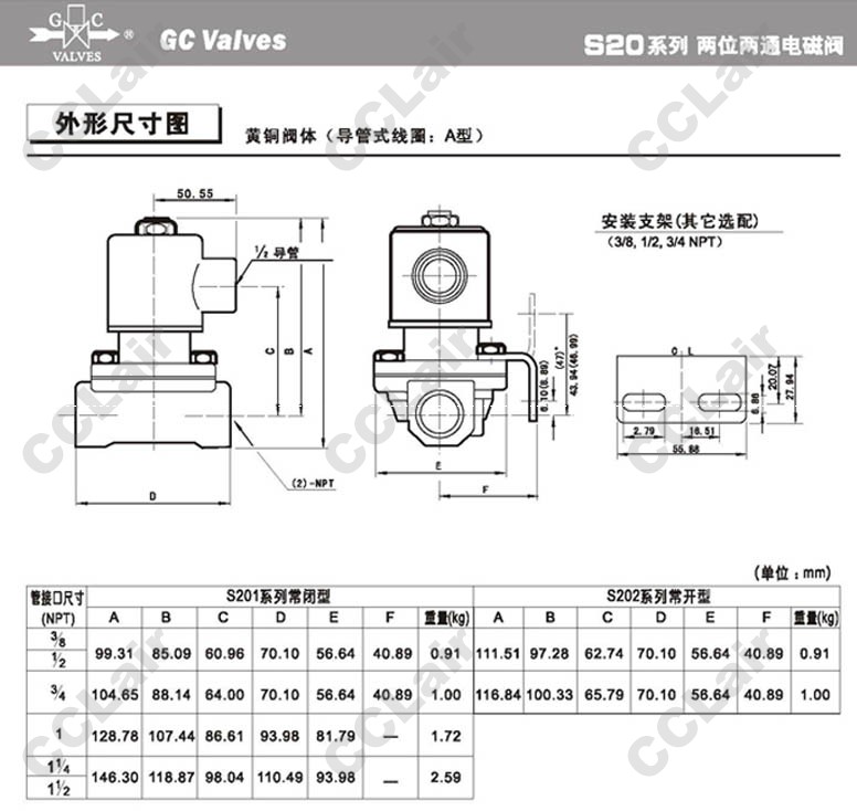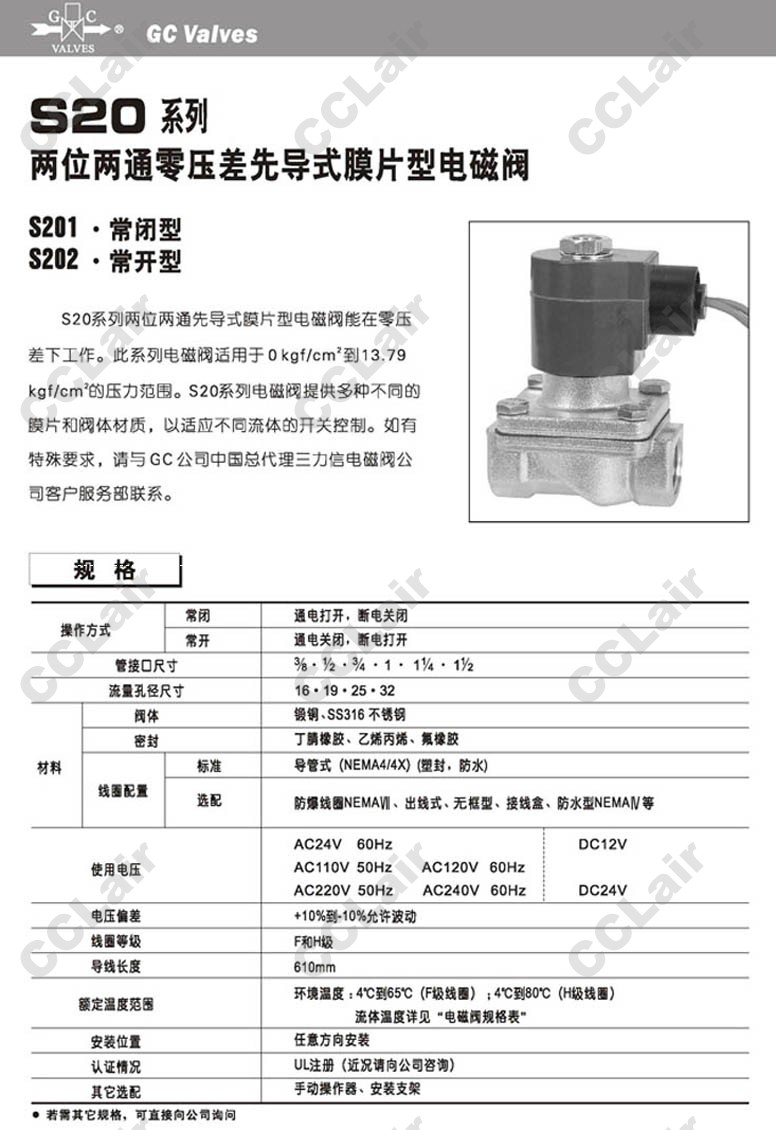 S201GF02,S201GH02,S202GF02,S202GH02,S202GH02E7EG5,S201GF02N5GJ2,GC Valves二位二通零壓差電磁閥