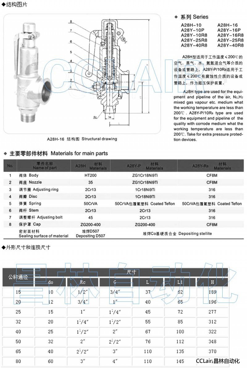A28Y-10R-DN50,A28H-16-DN65,A28W-16R-DN50,A28H-16C-DN20,A28Y-10R-DN32,安全閥