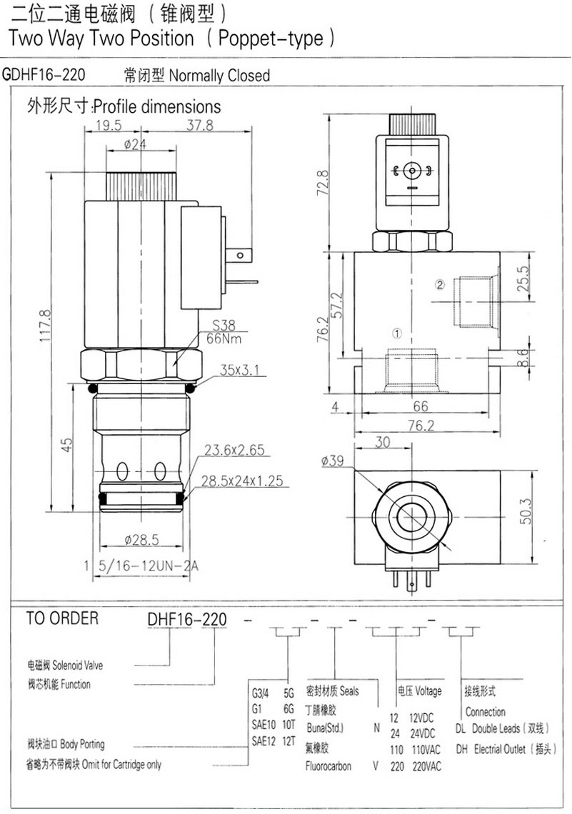 詳細信息 GDHF16-220,二位二通電磁閥