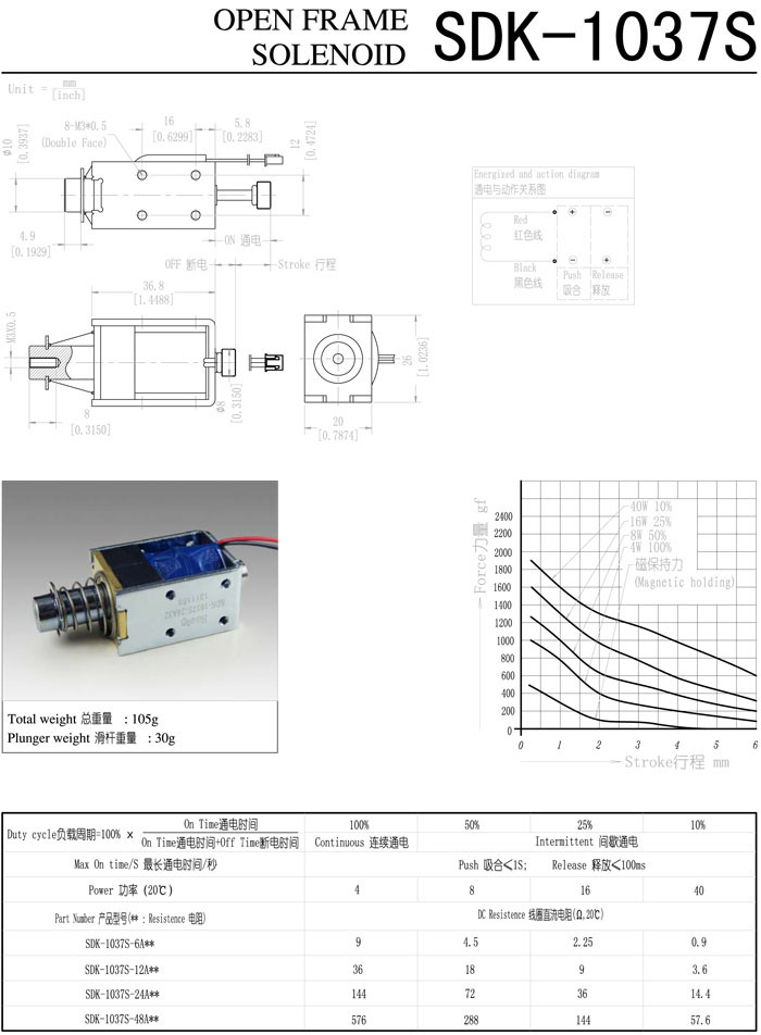 詳細信息 SDK-1037S-6A,SDK-1037S-12A,SDK-1037S-24A,SDK-1037S-48A,直動(dòng)電磁鐵