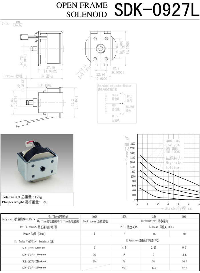 SDK-0927L-6A,SDK-0927L-12A,SDK-0927L-24A,SDK-0927L-48A,直動(dòng)電磁鐵