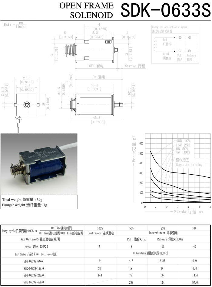 詳細信息 SDK-0633S-6A,SDK-0633S-12A,SDK-0633S-24A,SDK-0633S-48A,直動(dòng)電磁鐵