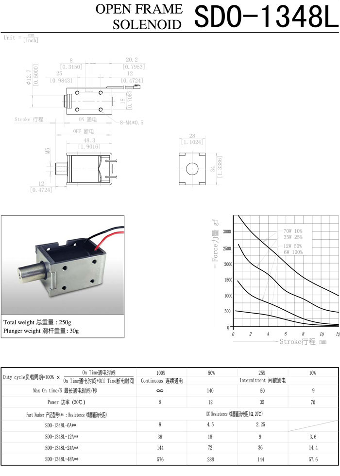 SDO-1348L-6A,SDO-1348L-12A,SDO-1348L-24A,SDO-1348L-48A,直動(dòng)電磁鐵