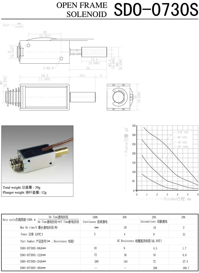 詳細信息 SDO-0730S-06A,SDO-0730S-12A,SDO-0730S-24A,SDO-0730S-48A,直動(dòng)電磁鐵