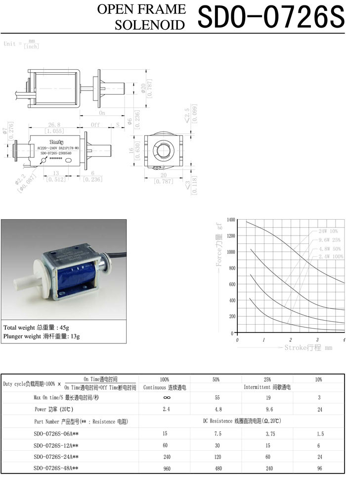 SDO-0726S-06A,SDO-0726S-12A,SDO-0726S-24A,SDO-0726S-48A,直動(dòng)電磁鐵