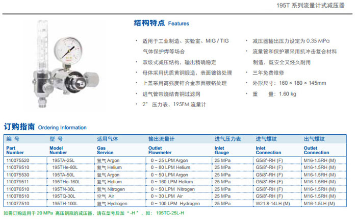 195TA-25L,195THe-80L,195TA-50L,195THe-160L,195TN-30L,195TQ-30L,195TH-100L,流量計式減壓器