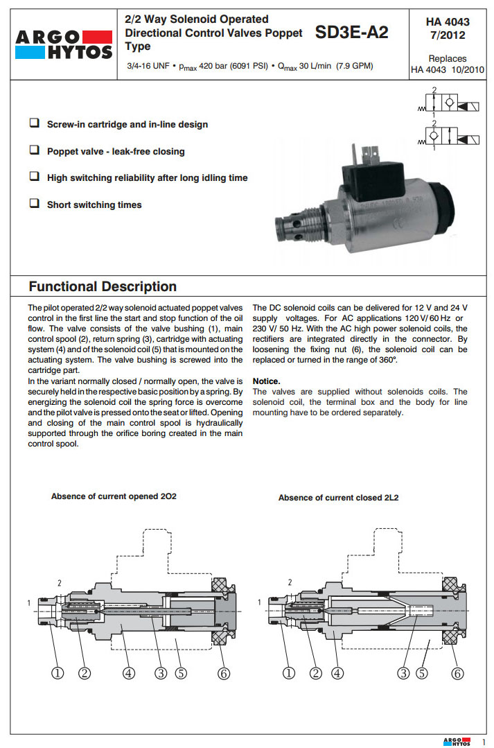 SD3E-A2/H202M2,SD3E-A2/H2L2M2,SD3E-A2/H202M5,SD3E-A2/S2L2M5,SD3E-A2/S202M9,SD3E-A2/S2L2M9,ARGO電磁方向控制閥