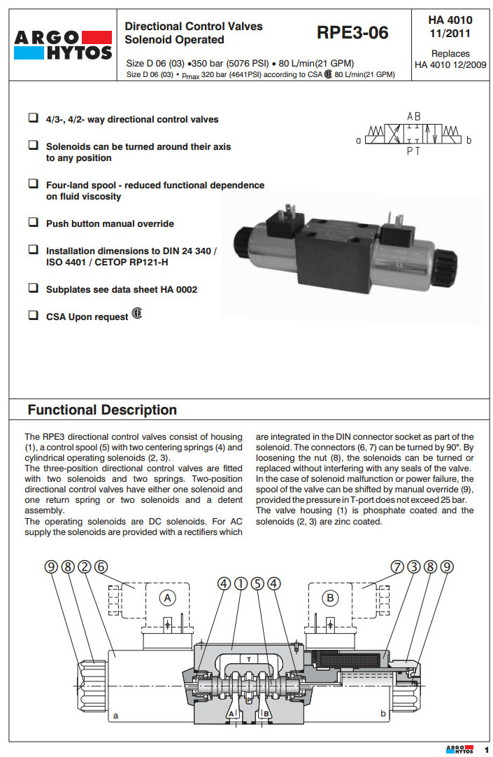 RPE3-062,RPE3-063,RPE3-062Z11/01200E1,RPE3-063C11/23050E5,RPE3-062C51/01200E1,ARGO電磁方向控制閥