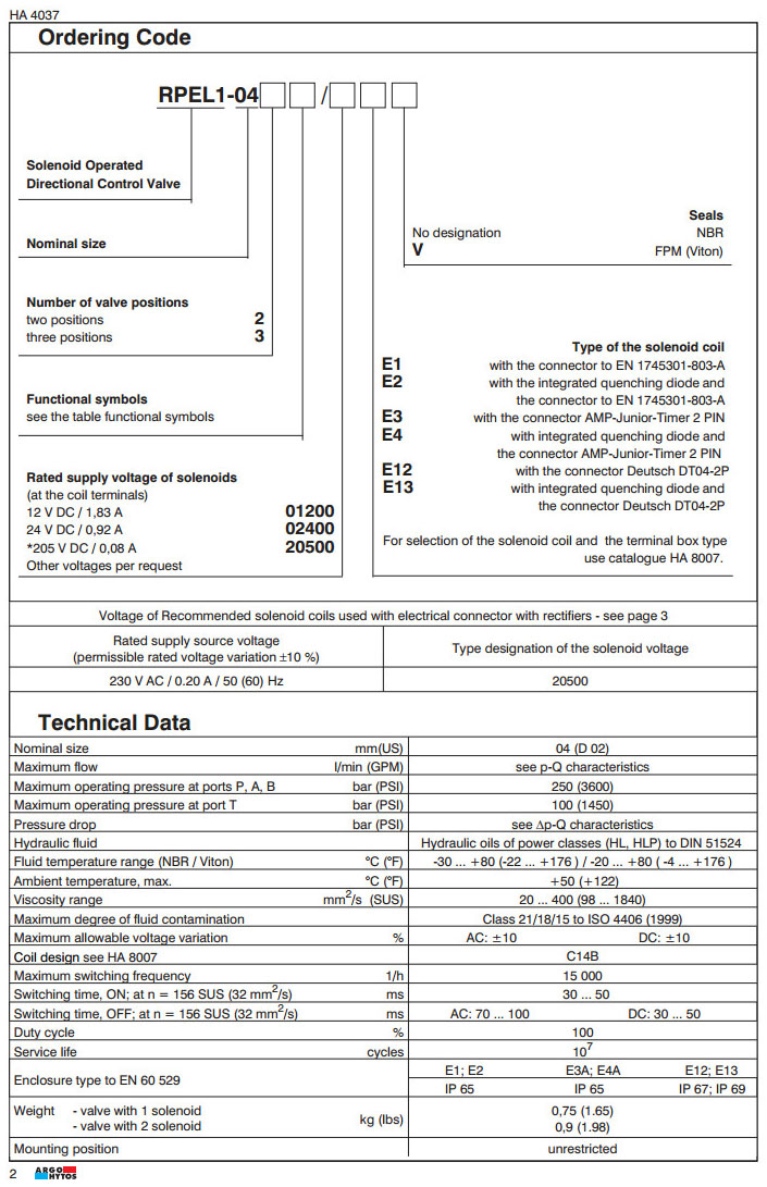 RPEL1-042,RPEL1-043,RPEL1-043X11/20500,RPEL1-042Z11/01200,RPEL1-042H51/02400,ARGO電磁方向控制閥