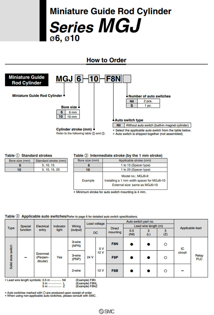 MGJ6-5,MGJ6-10,MGJ6-15,MGJ10-5,MGJ10-10,MGJ10-15,MGJ10-25,SMC微型帶導桿氣缸