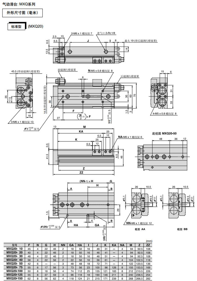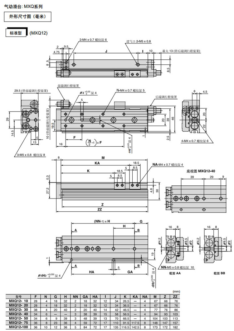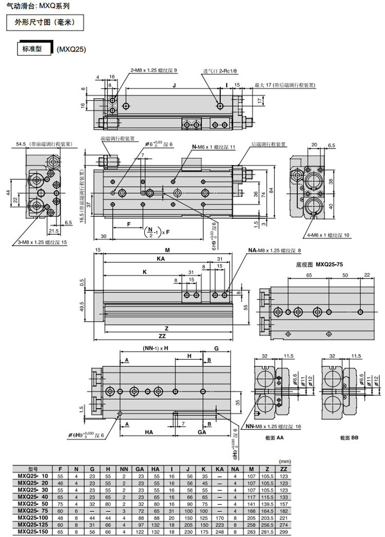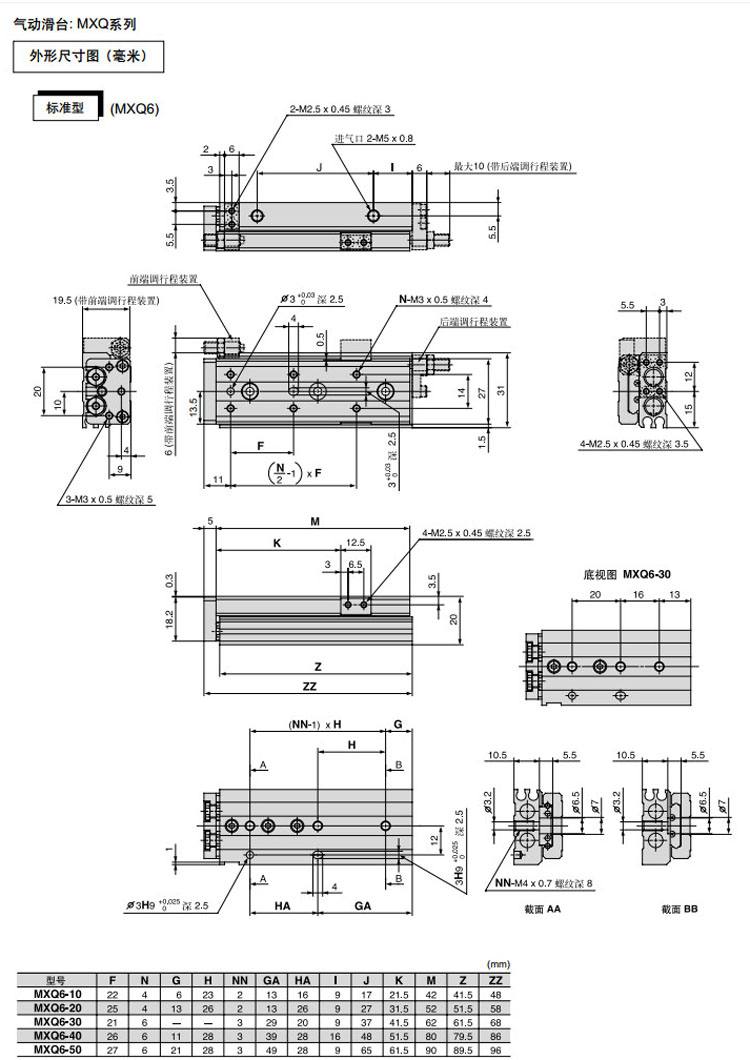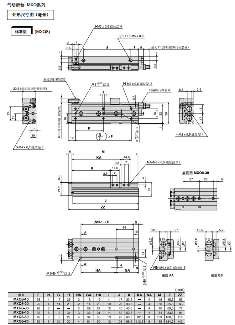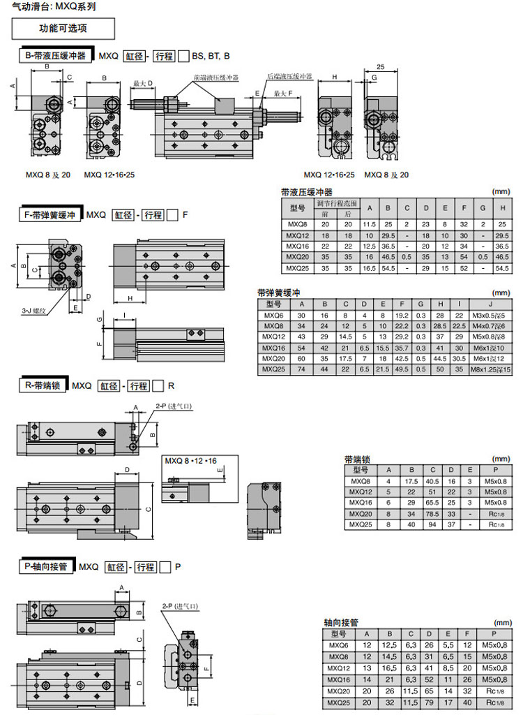 MXQ6-10,MXQ8-10,MXQ12-10,MXQ16-10,MXQ20-10,MXQ25-10,MXQ6-20,SMC氣動(dòng)滑臺氣缸