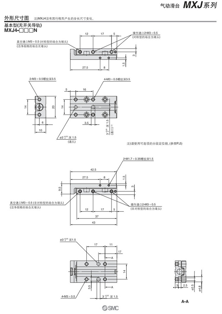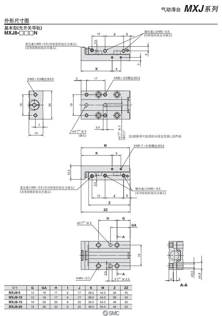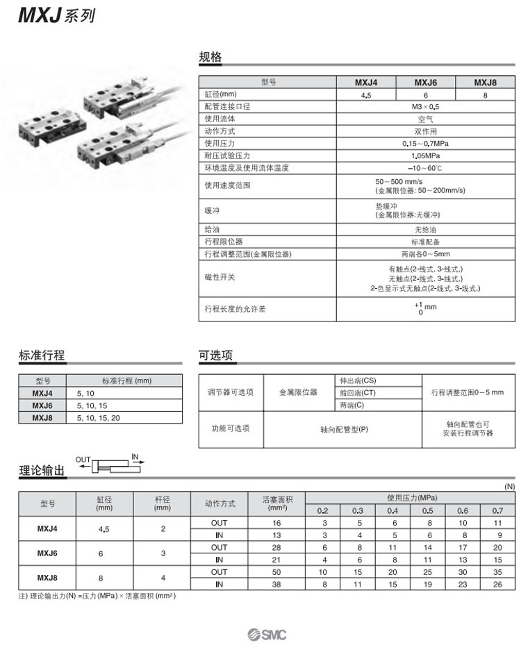 MXJ4-5,MXJ4-10,MXJ6-5,MXJ6-10,MXJ6-15,MXJ8-5,MXJ8-10,MXJ8-15,MXJ8-20,SMC氣動(dòng)滑臺氣缸