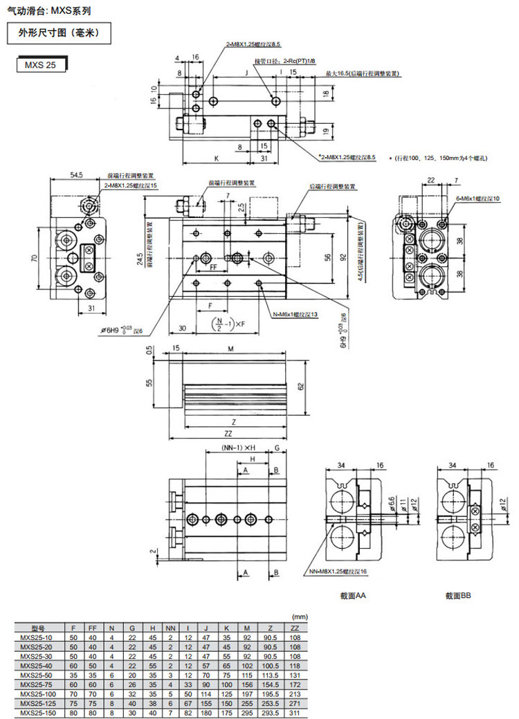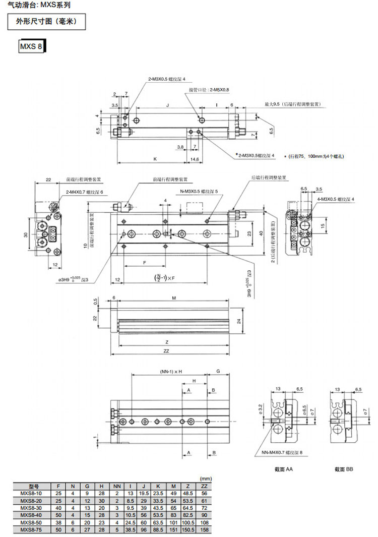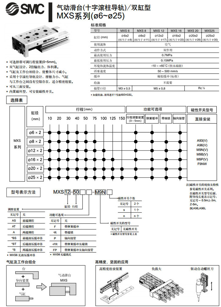 MXS6-10,MXS8-10,MXS12-10,MXS16-10,MXS20-10,MXS25-10,MXS6-20,MXS8-20,MXS12-20,SMC氣動(dòng)滑臺氣缸