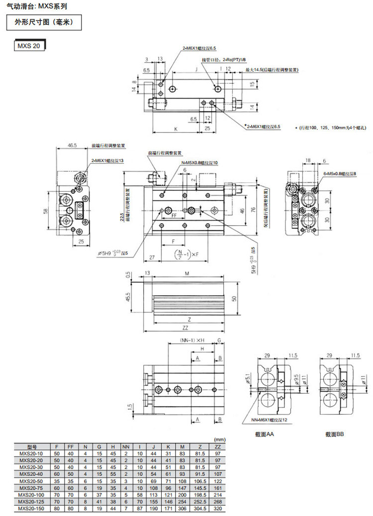 MXS6-10,MXS8-10,MXS12-10,MXS16-10,MXS20-10,MXS25-10,MXS6-20,MXS8-20,MXS12-20,SMC氣動(dòng)滑臺氣缸