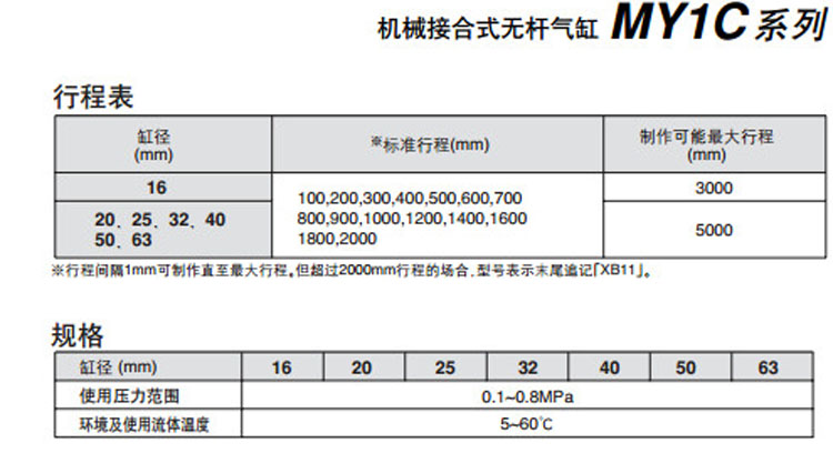 MY1C10,MY1C16,MY1C20,MY1C25,MY1C32,MY1C40,MY1C50,MY1C63,MY1C10-100,SMC無(wú)桿氣缸