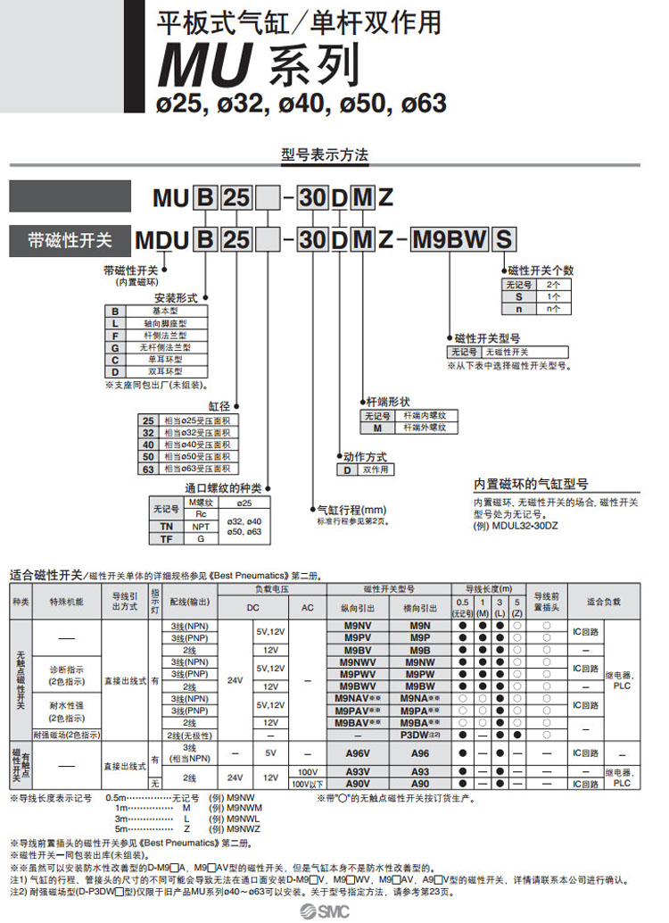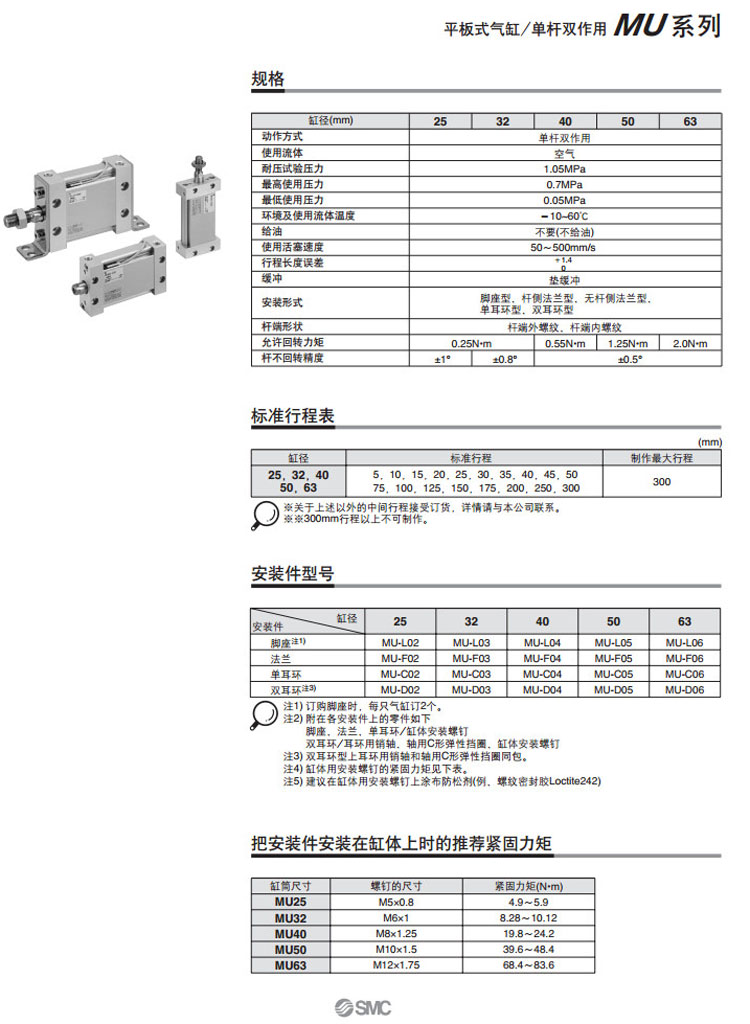 MUB25-5D,MUL25-5D,MUF25-5D,MUG25-5D,MUC25-5D,MUD25-5D,SMC平板式氣缸