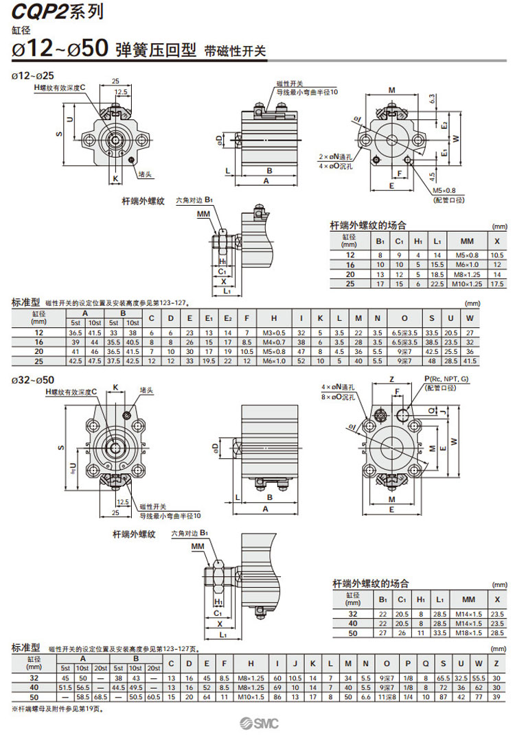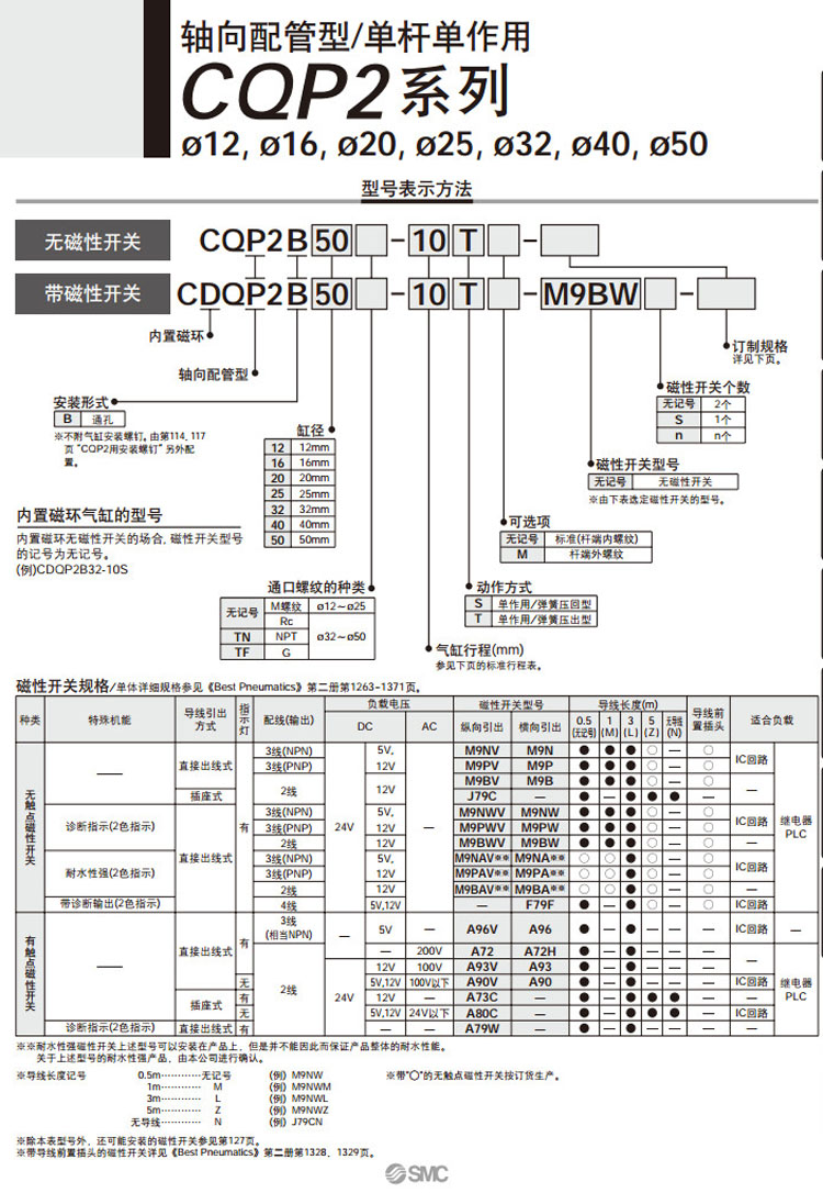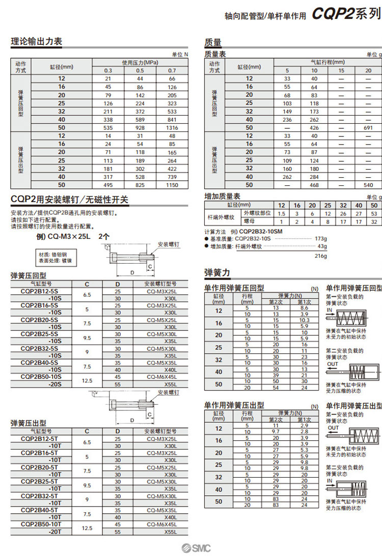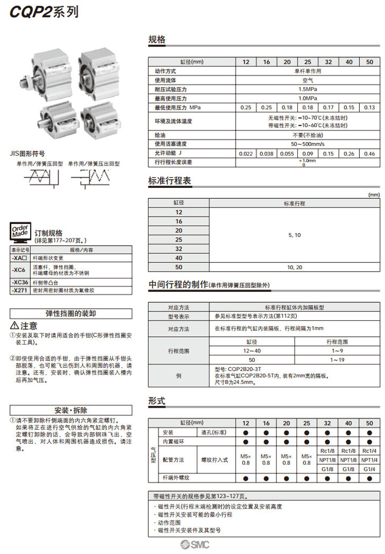 CQP2B12-5S,CQP2BH20-5S,CDQP2B12-5S,CDQP2BH20-5S,CQP2B12-10T,CQP2BH20-10T,SMC軸向配管型氣缸