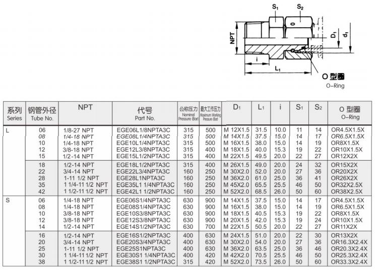 EGE06L1/8NPTA3C,EGE08L1/4NPTA3C,EGE06S1/4NPTA3C,EGE10S3/8NPTA3C,直通組合接頭