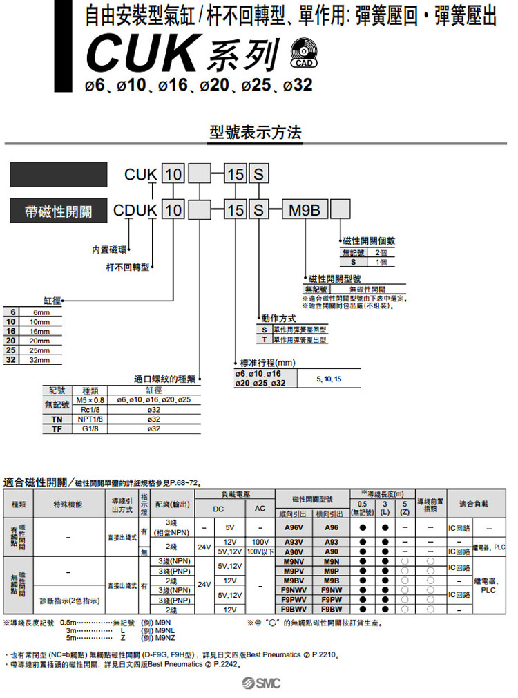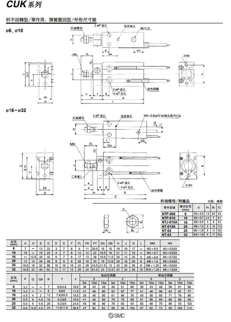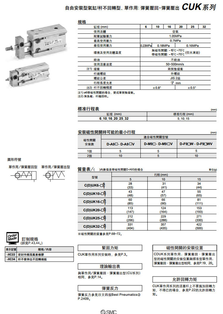 CUK6-5,CUK10-5,CUK16-5,CUK25-5,CUK32-5,CDUK6-5,CDUK10-5,CDUK16-5,CDUK25-5,CDUK32-5,SMC自由安裝型氣缸