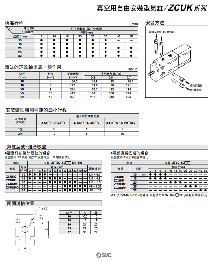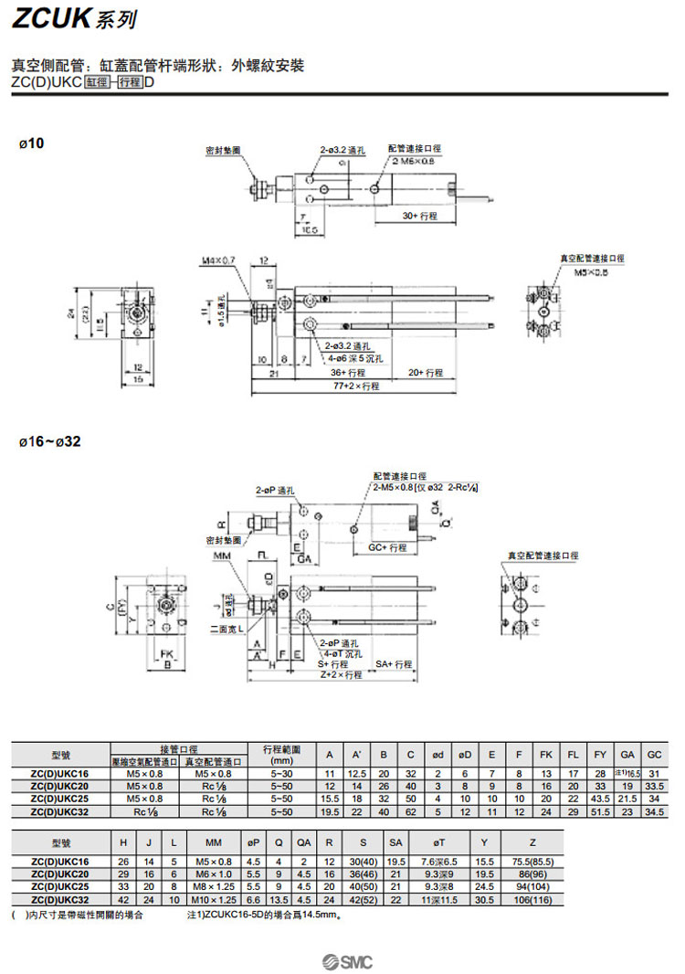 ZCUKC,ZCUKD,ZCUKQ,ZCUKR,ZCDUKC,ZCDUKD,ZCDUKQ,ZCDUKR,ZCUKC10-5D,ZCDUKC10-5D,SMC自由安裝型氣缸