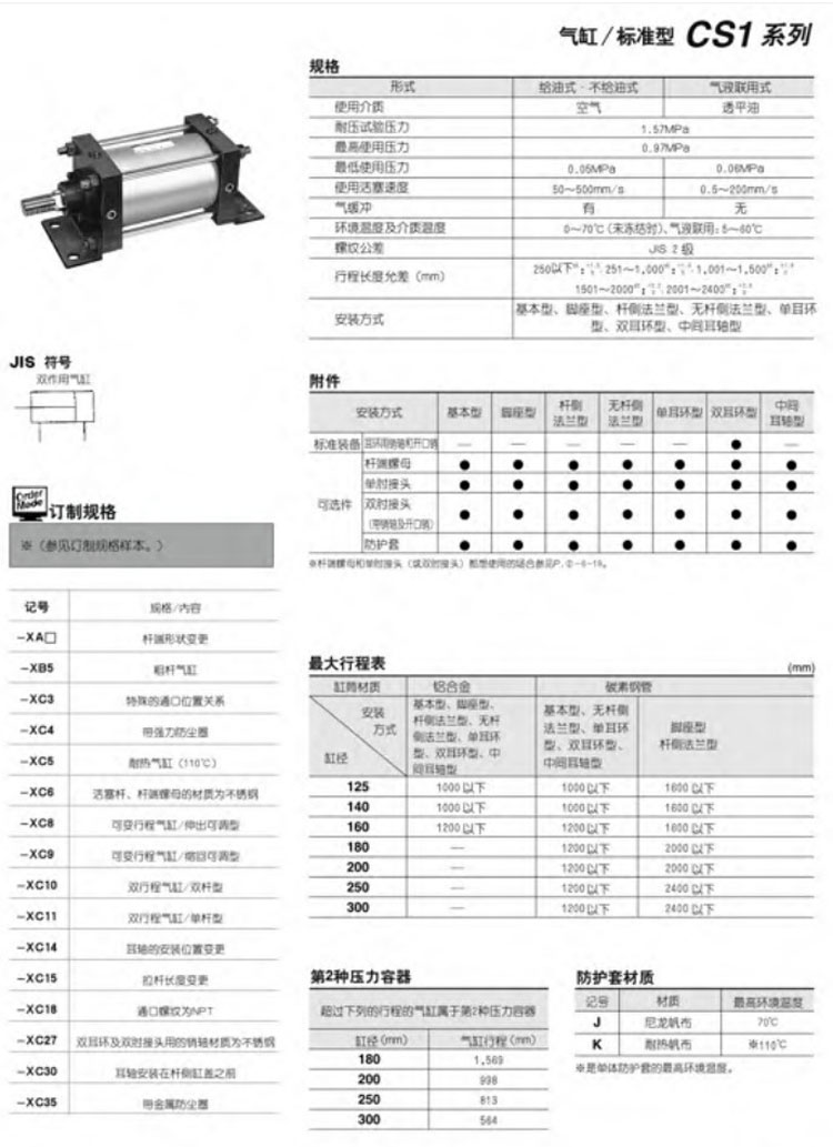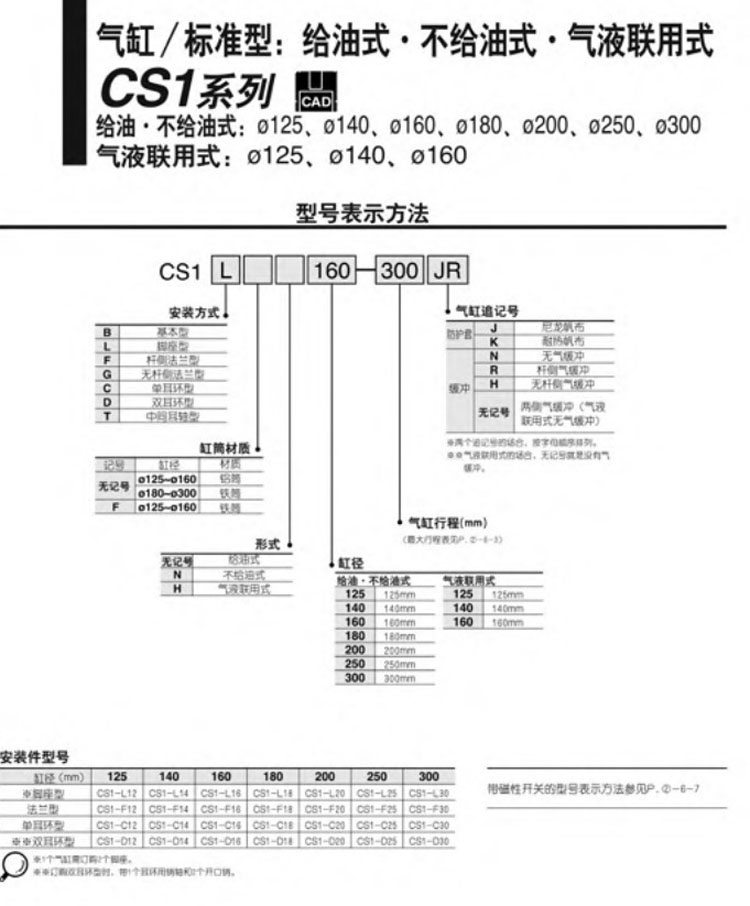 CS1B125-300,CS1L125-300,CS1F125-300,CS1G125-300,CS1C125-300,CS1D125-300,CS1T125-300,SMC標準型氣缸