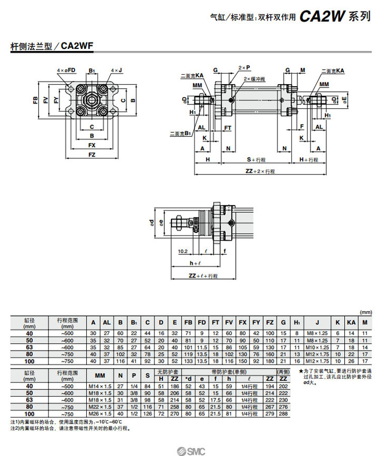 CA2WB40-25,CA2WL40-25,CA2WF40-25,CA2WT40-25,CDA2WB40-25,CDA2WL40-25,SMC標準型氣缸