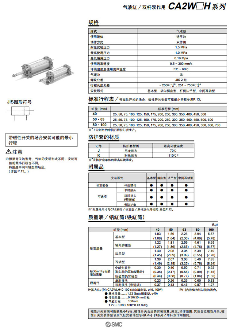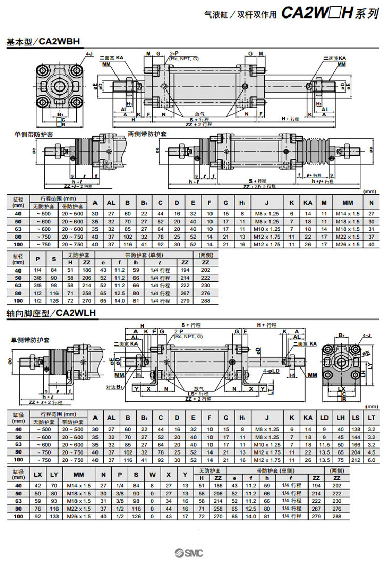 CA2WBH40-25,CA2WLH40-25,CA2WFH40-25,CA2WTH40-25,CDA2WBH40-25,CDA2WLH40-25,CDA2WFH40-25,CDA2WTH40-25,SMC雙桿雙作用氣液缸