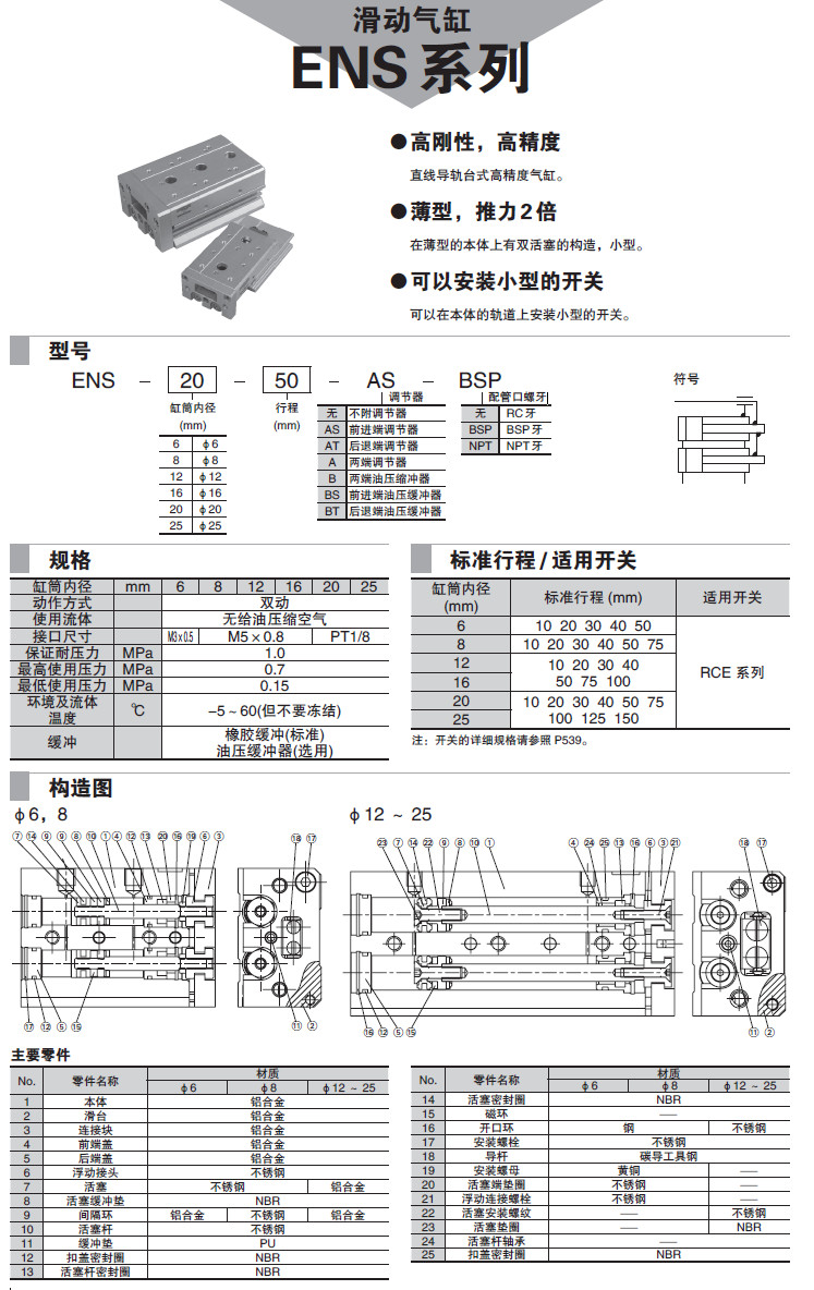 ENS-6,ENS-8,ENS-12,ENS-16,ENS-20,ENS-25,滑動(dòng)氣缸