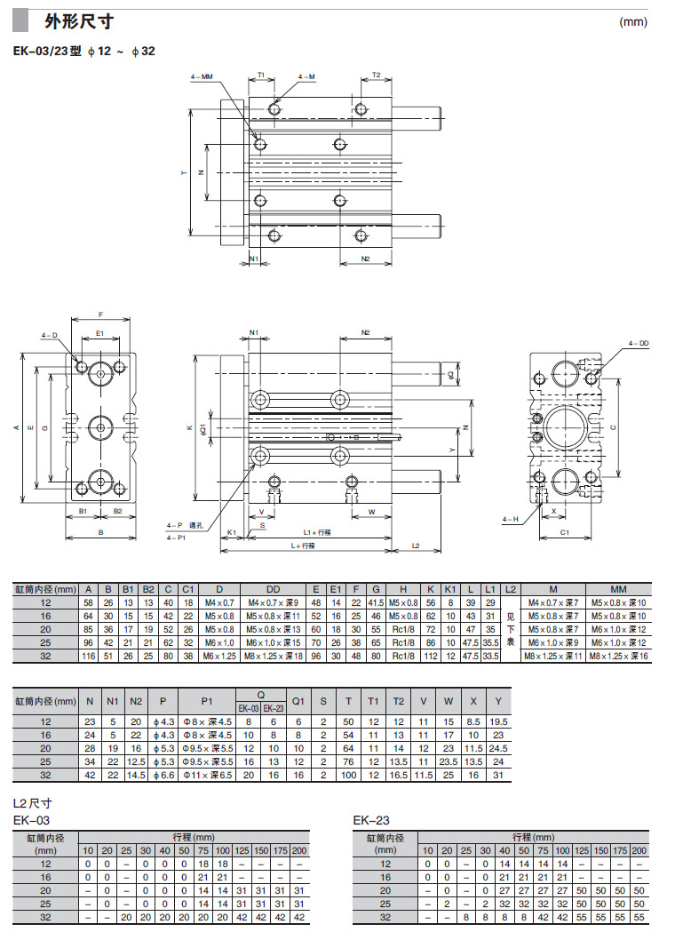 EK-03M-12,EK-03M-16,EK-03M-20,EK-23M-25,EK-23M-32,EK-23M-40,EK-23M-50,雙導桿氣缸