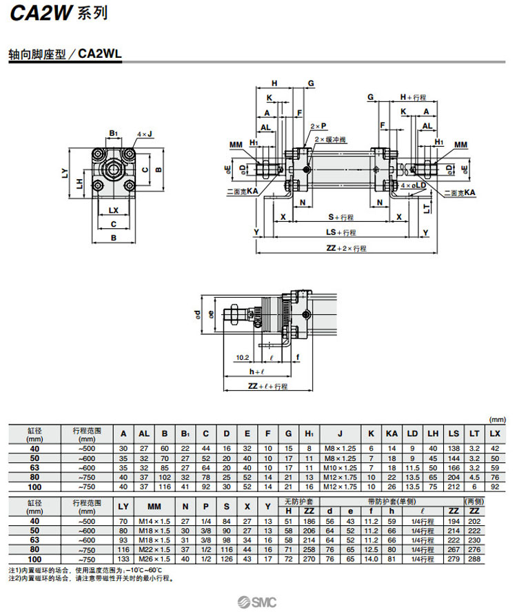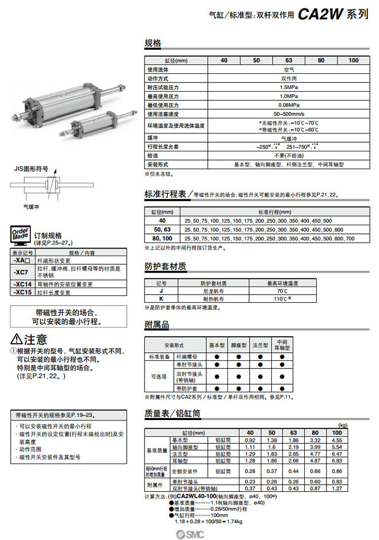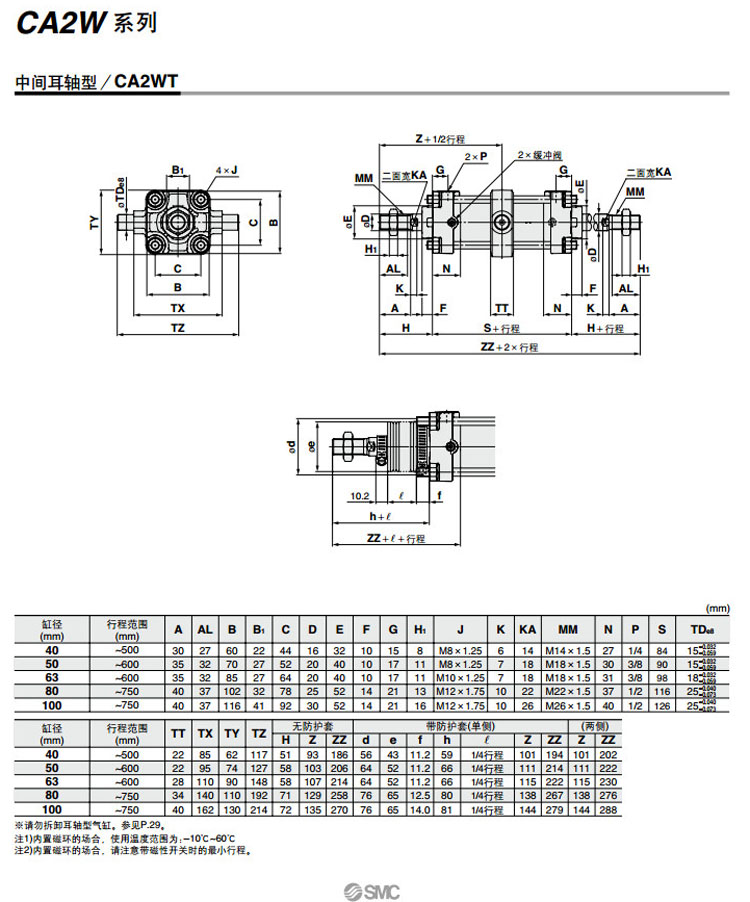 CDA2WT63-300,CDA2WT63-350,CDA2WT63-400,CDA2WT63-450,CDA2WT63-500,CDA2WT63-600,SMC標準型氣缸