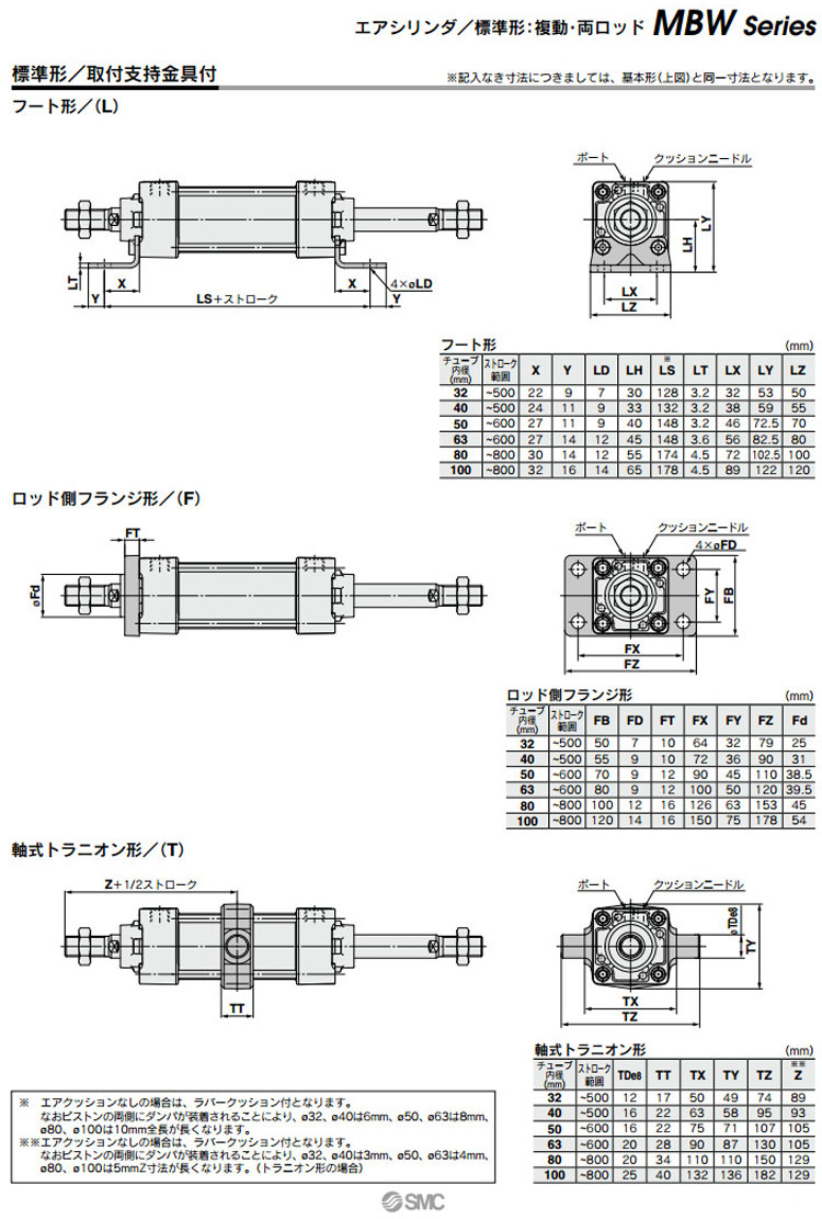 MDBWT80-700Z,MDBWT100-700Z,MBWB80-800Z,MBWB100-800Z,MBWL80-800Z,MBWL100-800Z,MBWF80-800Z,MBWF100-800Z,SMC標準型氣缸