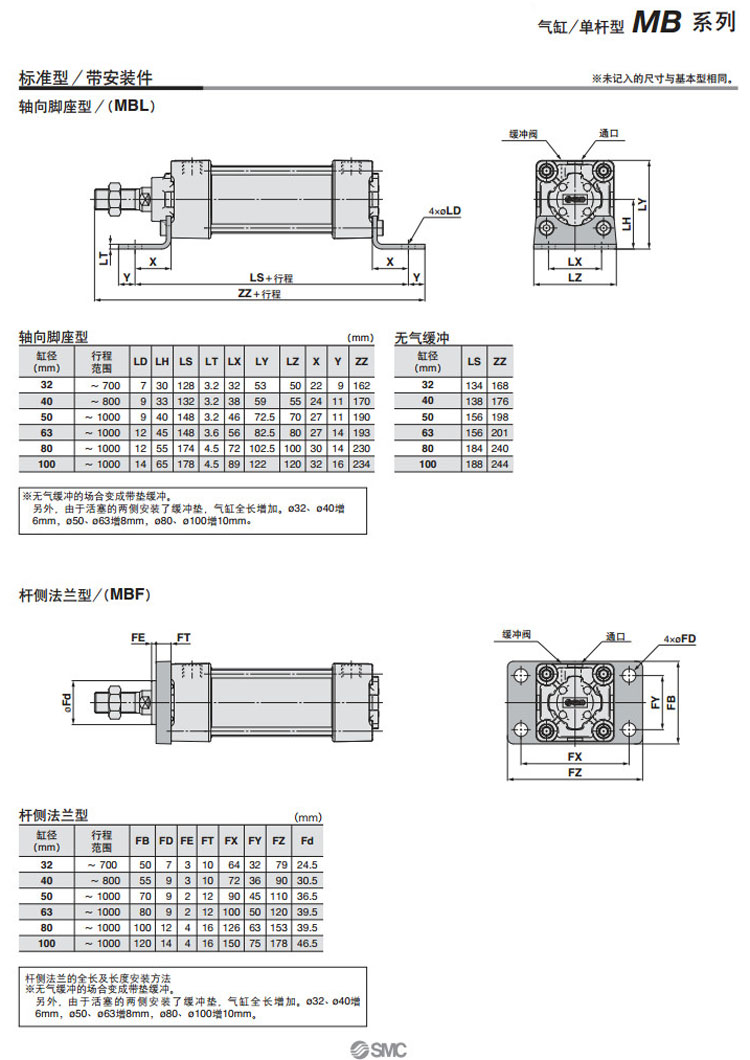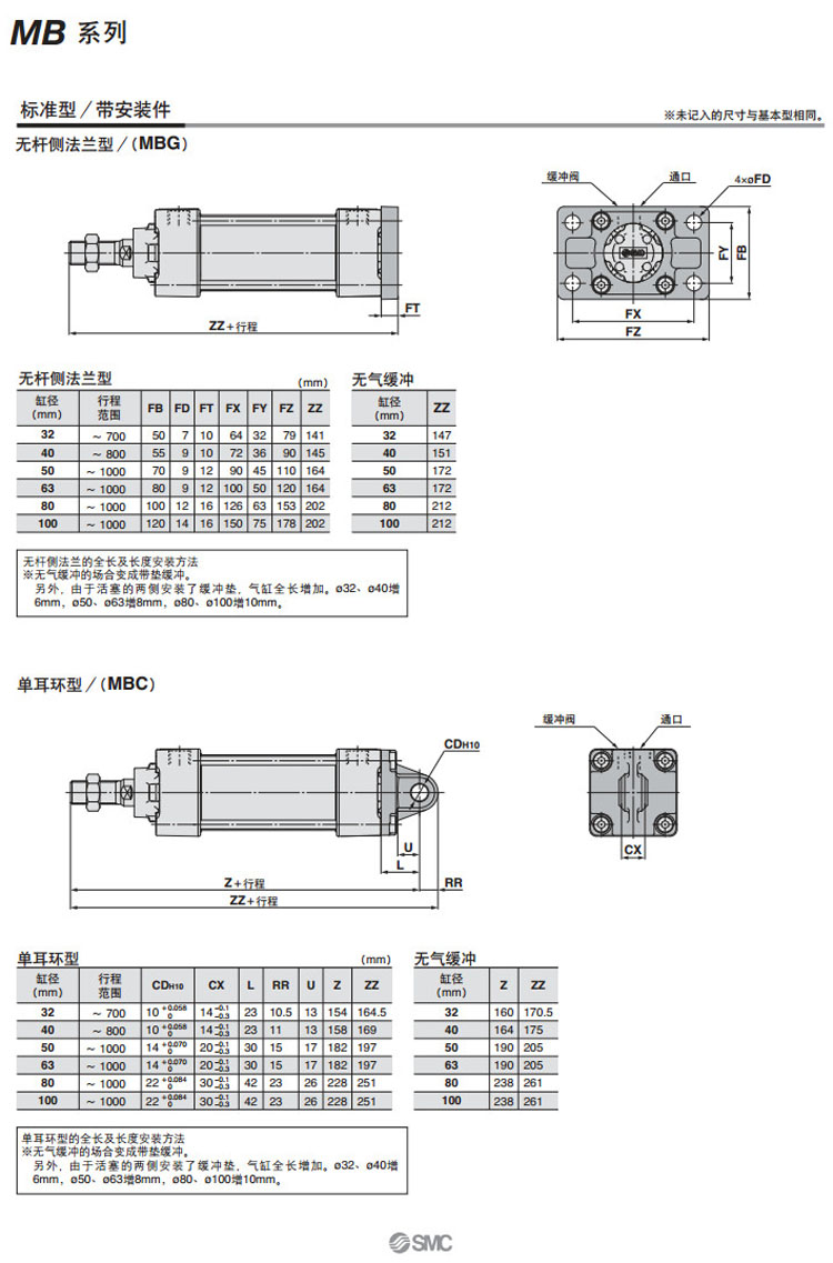 MBT80-600Z,MBT80-700Z,MBT80-800Z,MBT100-25Z,MBT100-50Z,MBT100-75Z,MBT100-100Z,MBT100-125Z,SMC單桿型氣缸