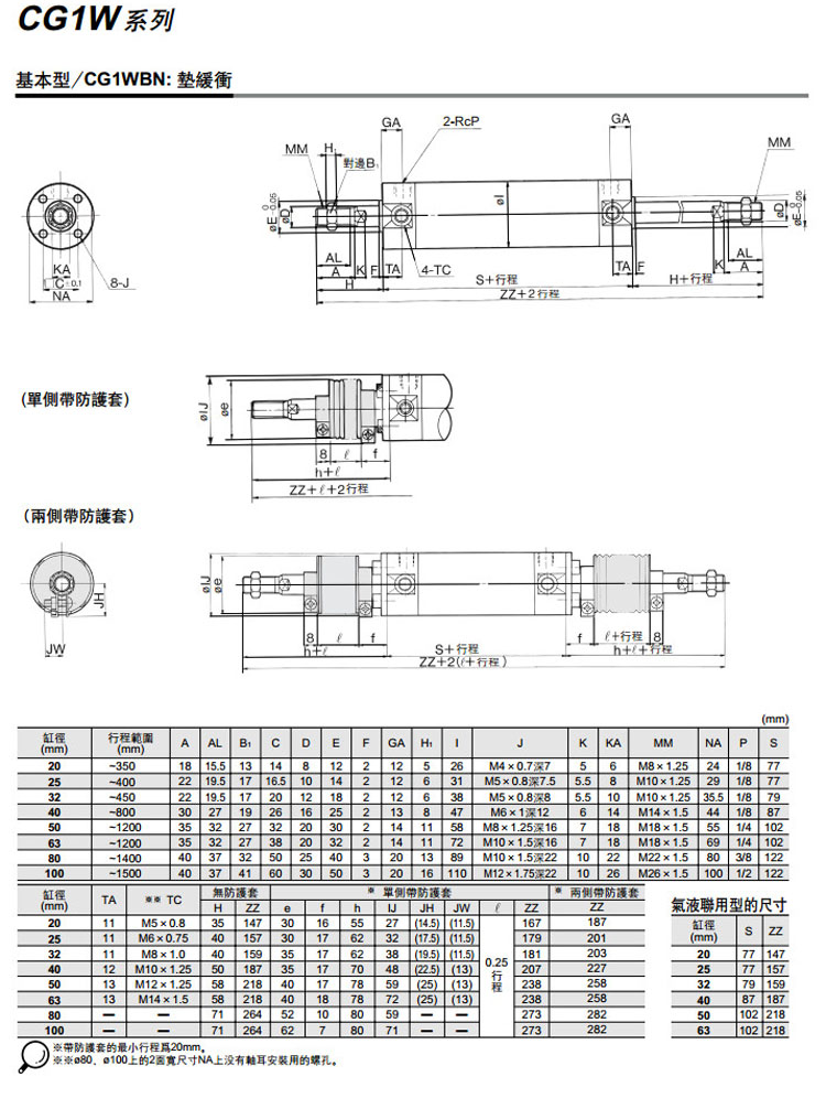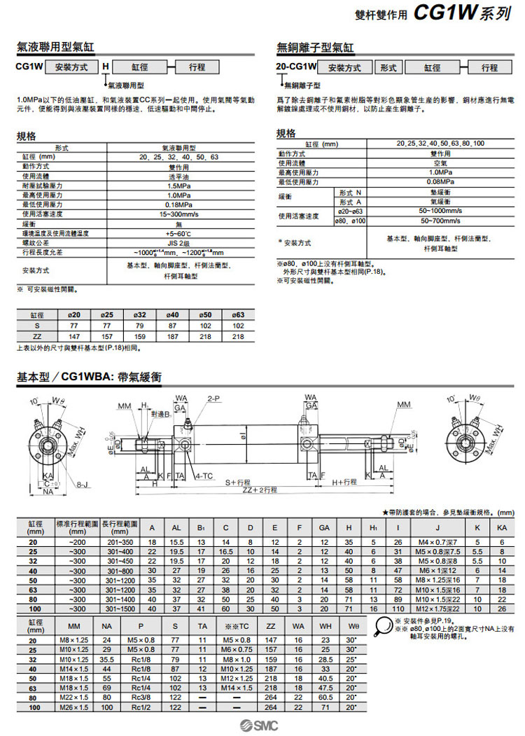 CG1WBN20-25,CG1WLN20-25,CDG1WFA20-25,CG1WUA20-25,CDG1WFN20-25,CG1WUN20-25,SMC雙桿雙作用氣缸