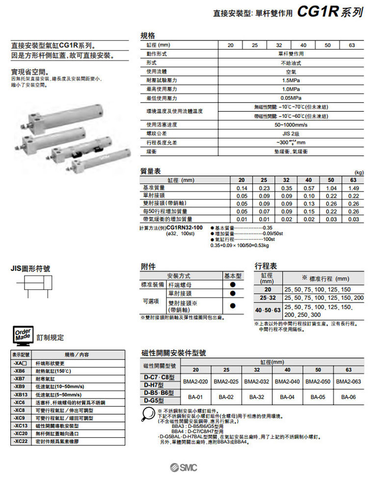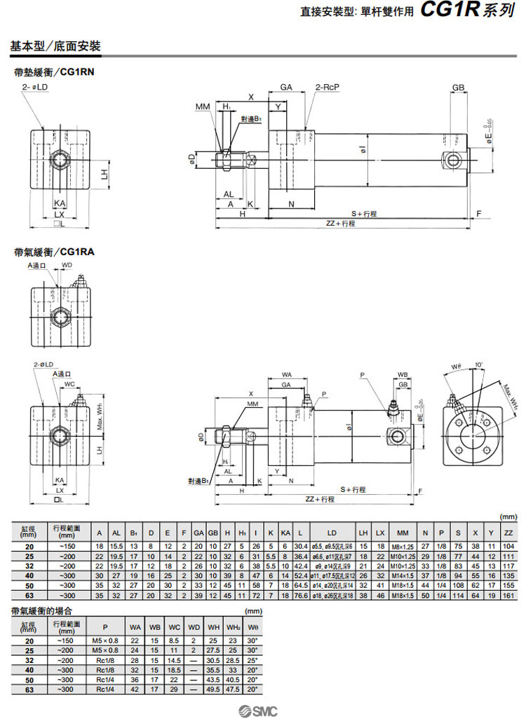 CG1RN20,CG1RN25,CG1RN32,CG1RN40,CG1RN50,CG1RN63,CG1RA20,CG1RA25,CG1RA32,CG1RA40,CG1RA50,CG1RA63,SMC直接安裝型氣缸